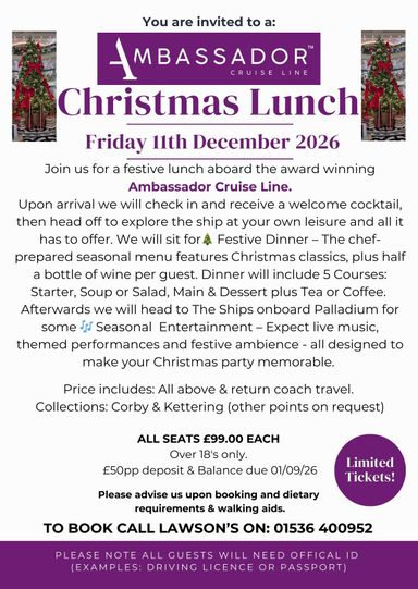 If there is anything you feel we've missed, or any questions please feel free to drop us an email at bookings@lawsonsofcorby.com one of our team will be happy to assist you