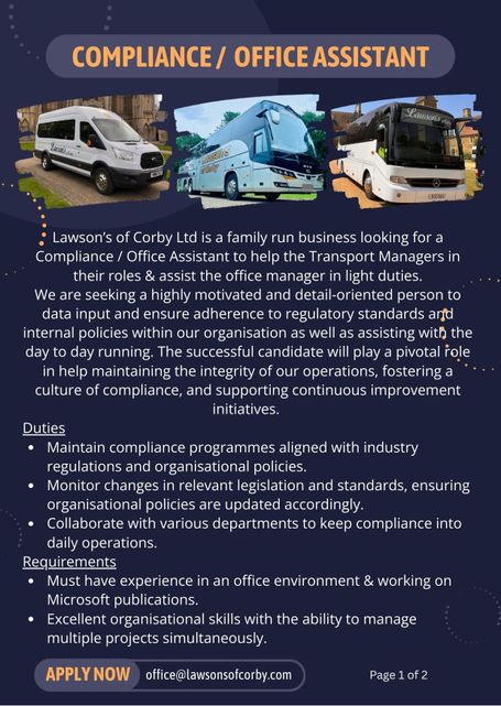 part time Passenger Assistant Team. The Job is Monday to Friday AM & PM Schools, Term Time only, 20hrs per working week. This role is to support Mainstream Primary OR children with additional needs to and from their school settings. All staff must be able to hold an enhanced DBS (CRB) & we will require the right candidate to hold a Passenger Assistant Qualification (PATs), the candidate will also be required to take periodic training. The candidate must also be able to start and finish their shift at Crucible Road, Corby.